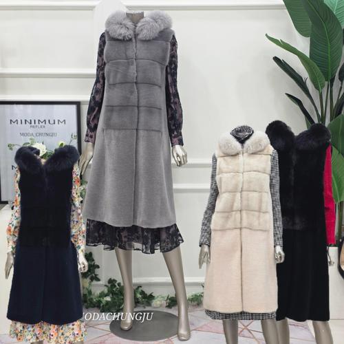 [미니멈]MD 리얼 양모 밍크 폭스 후드 롱 베스트 MD MZDKFV0920