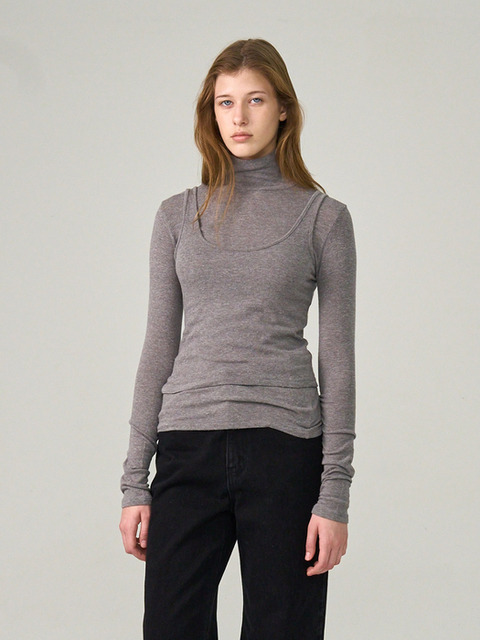 [헌치] Sleeveless & Turtleneck Layering T-Shirt
