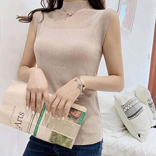 [셀럽하우스]가을 BCVO4526 이너 웨어 얇은 반목 목폴라 나시 민소매 니트