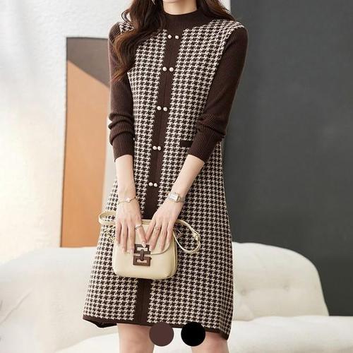 폴라니트체크스커트 니트원피스 W9200 투피스느낌 (WD9414D)