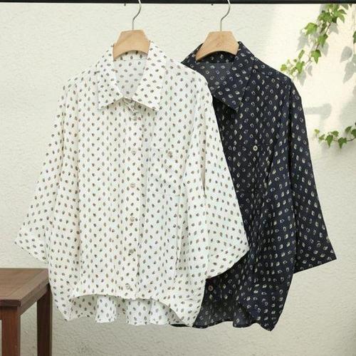 [다잇템] 여자 빅사이즈 폴로카라 블라우스 미니패턴 셔츠_24637738_588872