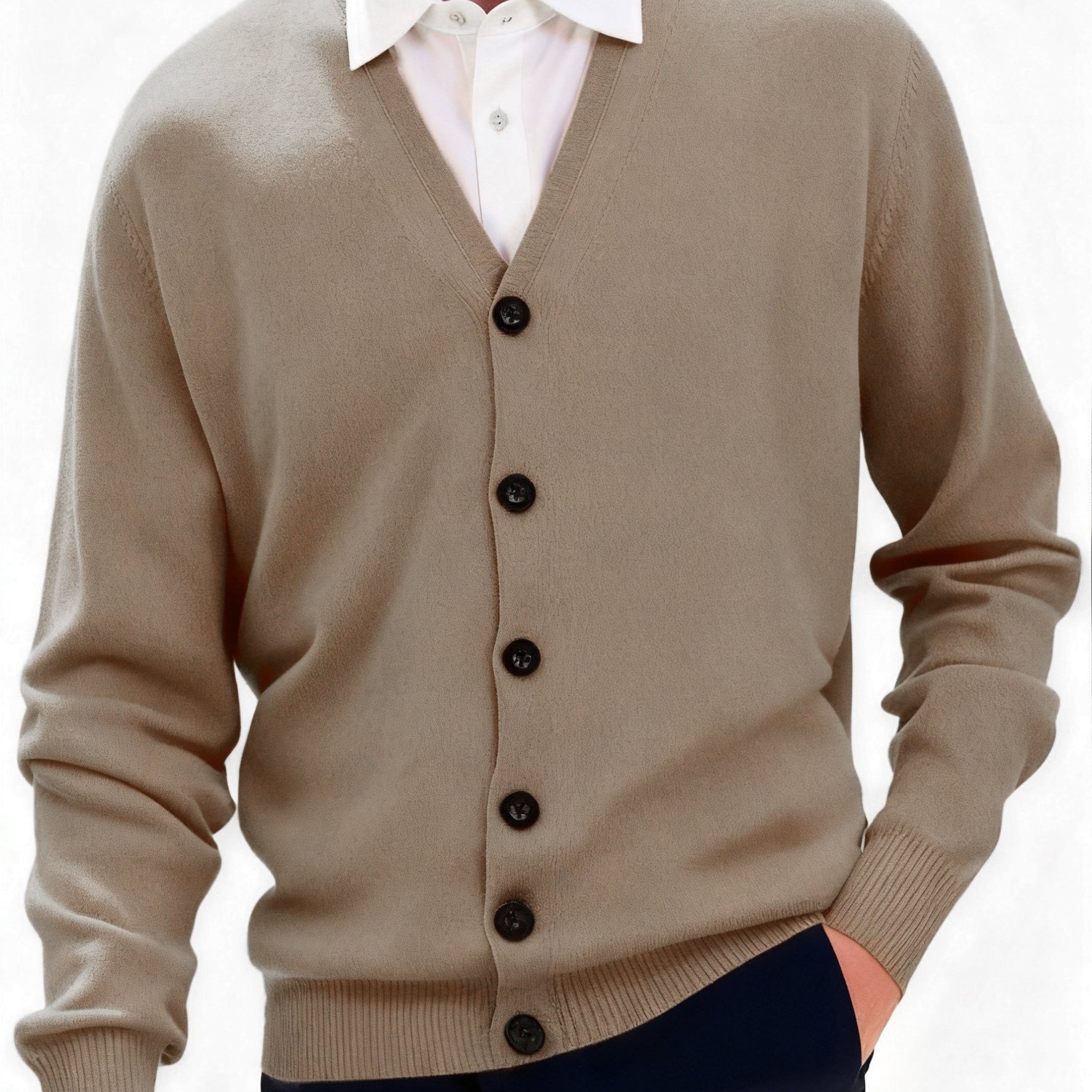 TEMU 남성용 신상 캐주얼 롱슬리브 비즈니스 V넥 버튼 우아한 신사 패션 솔리드 컬러 니트 가디건 재킷 탑