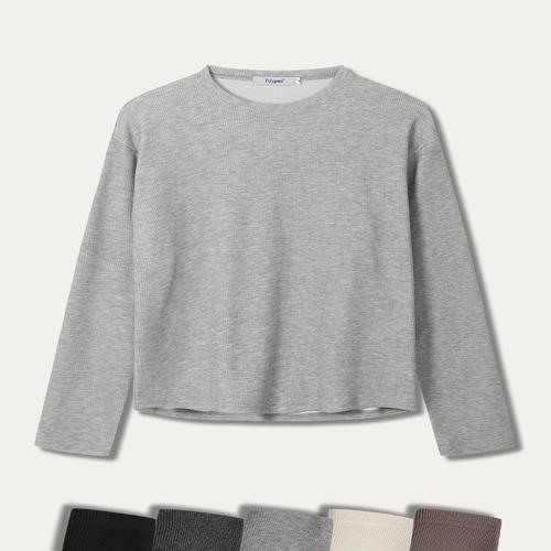 [폴리그램]리브드 세미 크롭 라운드 롱슬리브 - 5COLOR