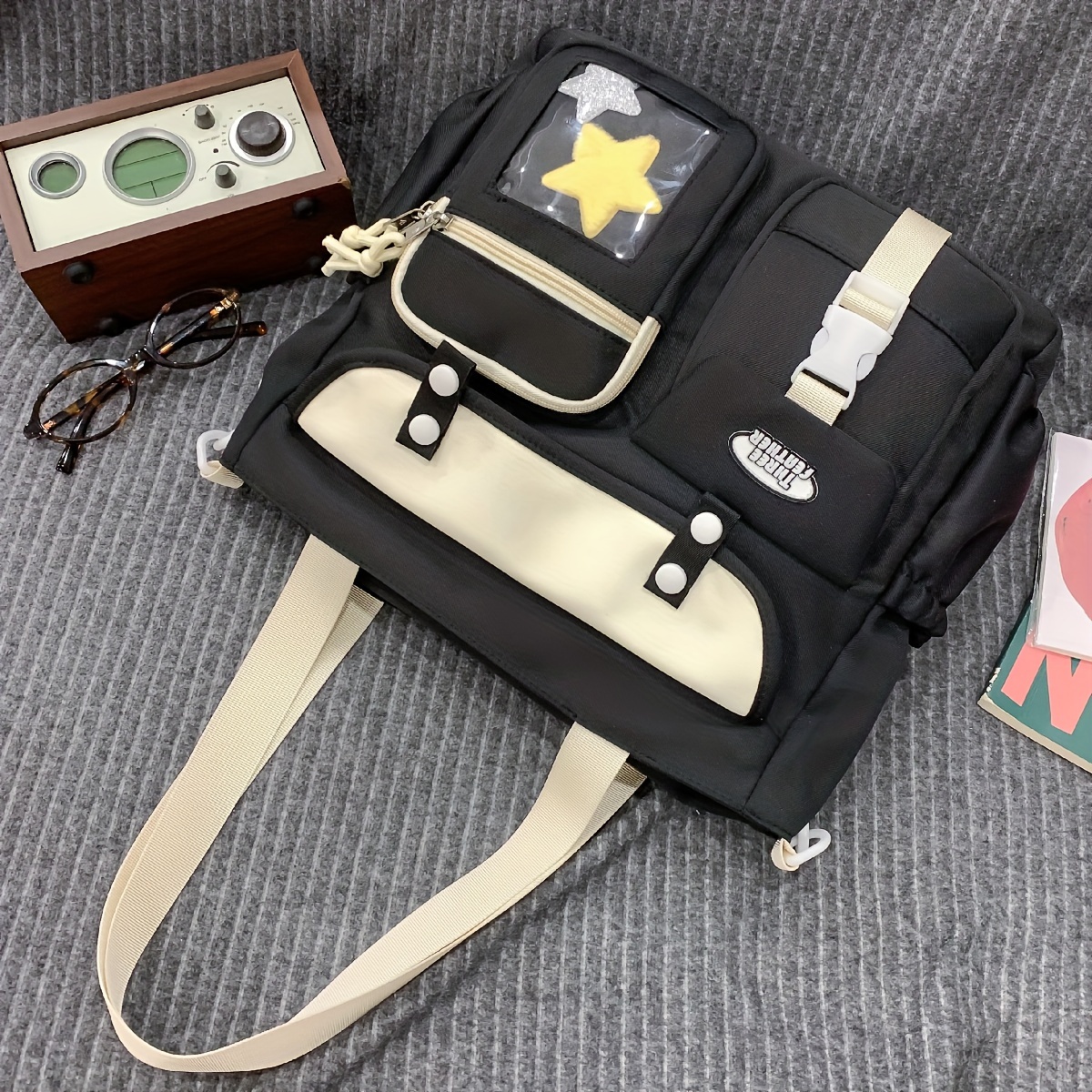 TEMU 여성용 나일론 가방, 지퍼 싱글, 토트백, 대학생 학교가방, 쇼핑 핸드백, 책가방, 메이크업 클래스 가방, 출퇴근 핸드백, 캐리백, 비치백