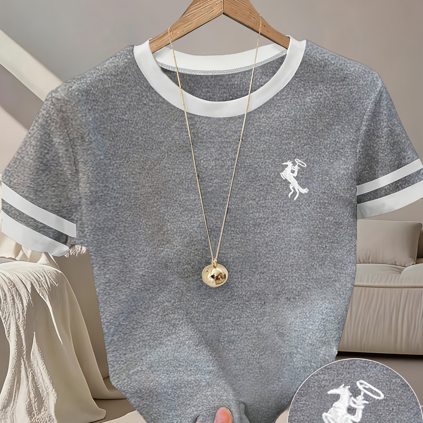 TEMU 여성용 Y2K 컬러블록 반팔 티셔츠 - 스트리트웨어, 파티, 휴가에 적합한 높은 신축성, 통근, 생일, 크리스마스, 새해, 밸런타인데이 의상을 위한 사계절 스트레치 핏 블라우스형 상의