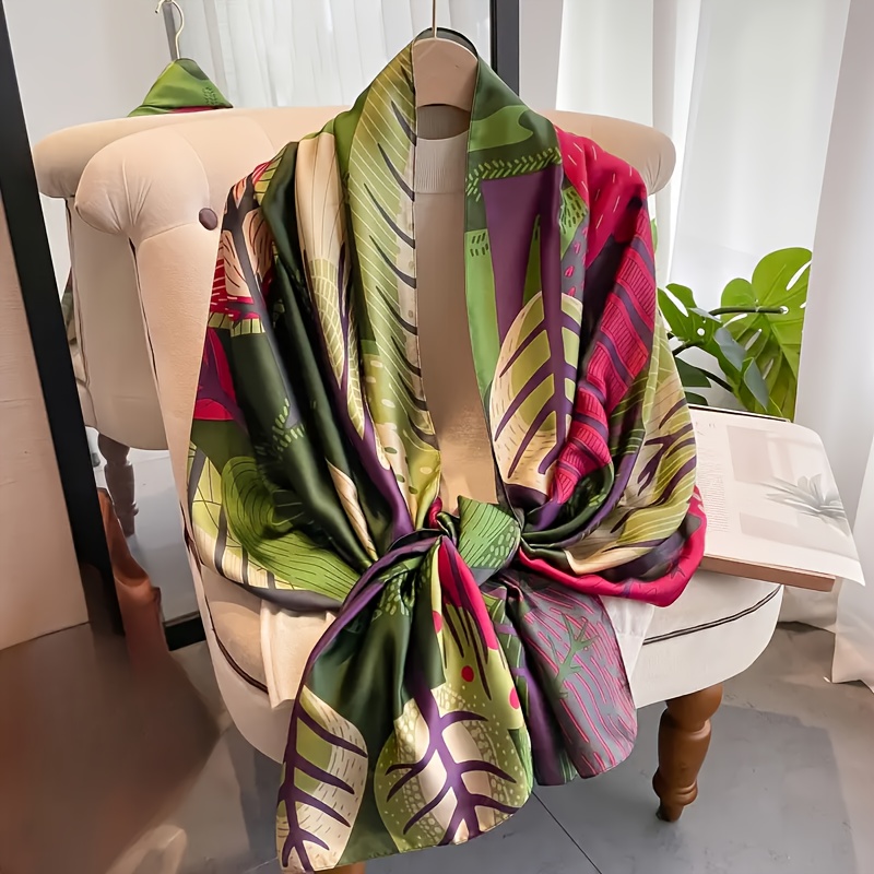 TEMU 여성용 스카프 - 가벼운 선 샤울 & 비치 타월 랩, 녹색/빨간색/보라색/검정색 무탄력 프린트, 여행, 파티, 일상복에 어울리는 우아한 액세서리, 야외 패션, 생동감 넘치는 패턴, 매끄러운 마감, 다재다능한 랩, 패션 애호가를 위한 아이템