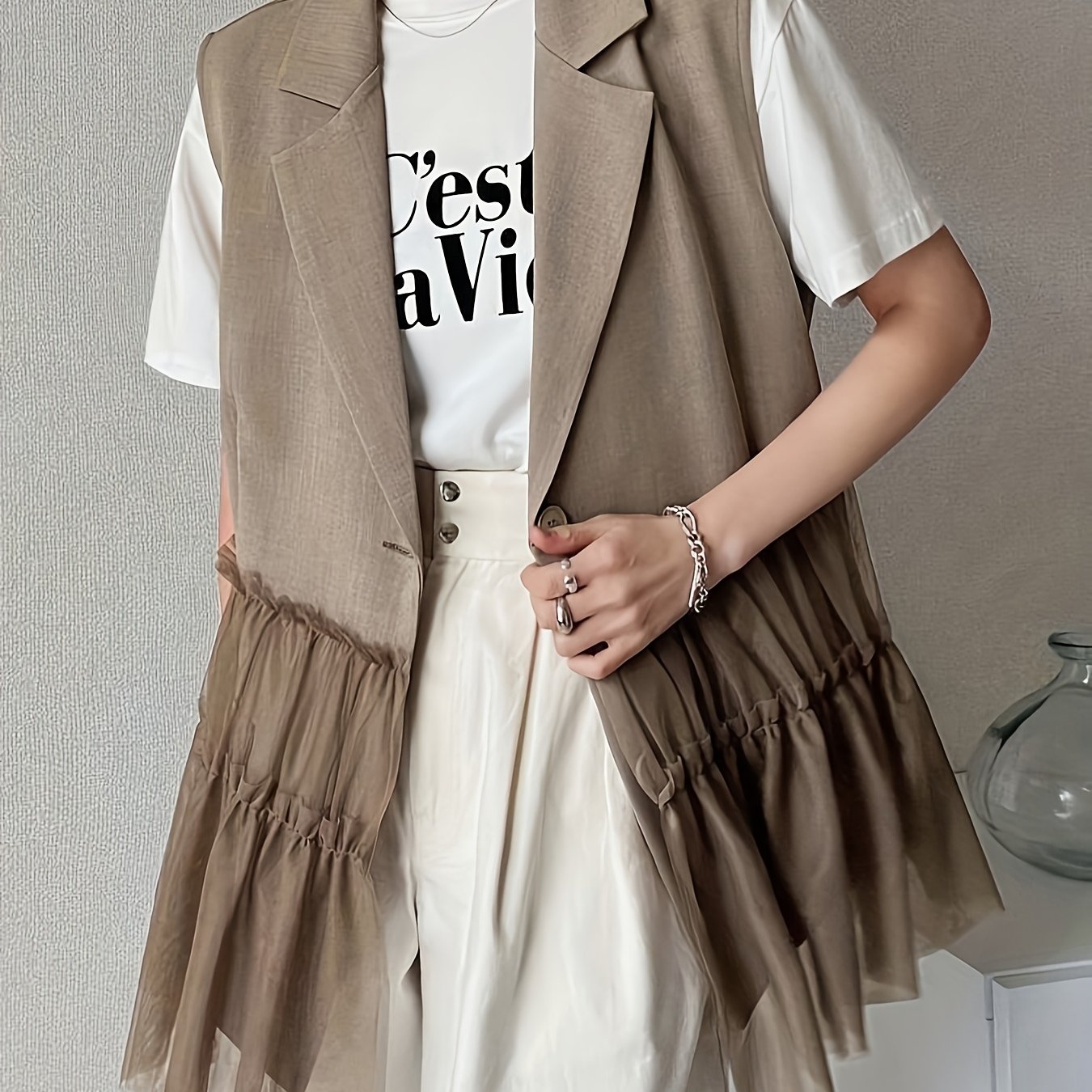 TEMU 여성용 스타일리시하고 우아한 슈트 조트 코트 / 원버튼 메쉬 스플라이스 여성용 아우터