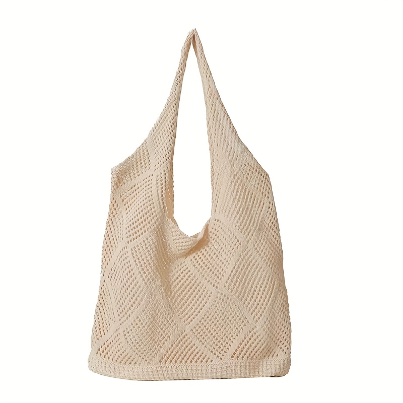 TEMU 1 멀티컬러 손목가방, 심플 빈티지 홀로우 아웃 대형 체크 패턴 폴리에스터 핸드백, 여성 토트백, 오픈탑 쇼핑 니트백, 매듭 크로셰 백, 패턴 여성 핸드백, 베스트백, 동전지갑, 레이디스백, 학생용 가방