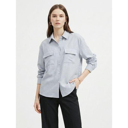 [샵앤]여성 카라넥 양포켓 데일리 하늘 셔츠 블라우스 NARU-WBL-21043-그레이