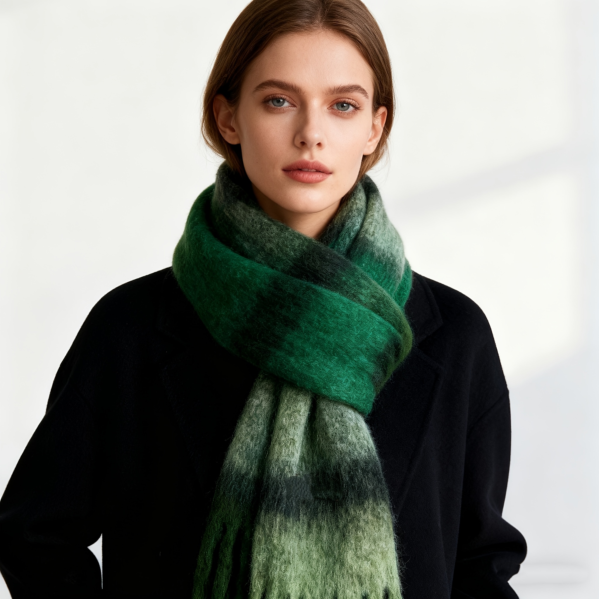 TEMU 한국 스타일 그린 겨울 스카프 숄 랩 - 두꺼운 방풍 태슬 프린지 트림, 부드럽고 따뜻한 넥 랩, 추운 날씨용 / 한국 패션 액세서리 (그린) - 다용도 쇄골부터 허리까지