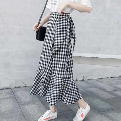 랩스타일 긴 치마 스커트 스트링 긴치마 프릴 체크 무 WD548F8