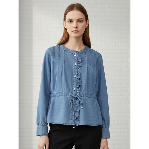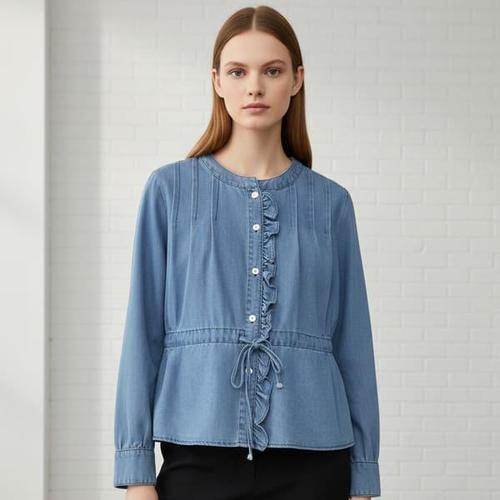 [리블리크]모네 핀턱 프릴 데님 셔츠_RF1BL014