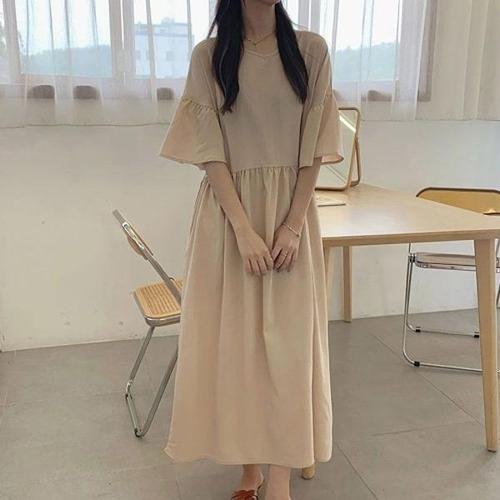 [엄지척]프릴 소매 체형커버 여유핏 플레어 스커트_19911849_667501