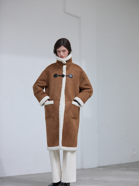여성 양털 뽀글이 안감 하이넥 스웨이드 무스탕 코트 자켓 아우터 -WJC0011- 겨울