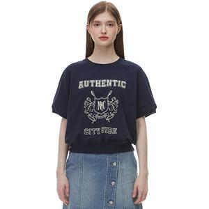 워터링 데일리룩 퀸빈티지 레터링 배색 여성 반팔티 링거티셔츠 국내생산 레귤러핏 기본티셔츠 (3컬러)