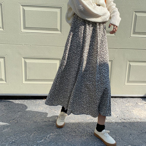 허리밴딩 플라워패턴 롱 스커트 A라인 데일리 여친룩