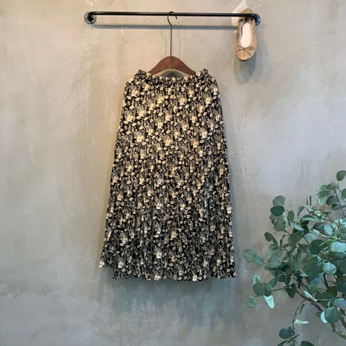 씨샵인더룸 / 로데 플라워 플리츠 트임 밴딩 롱 스커트 one color C