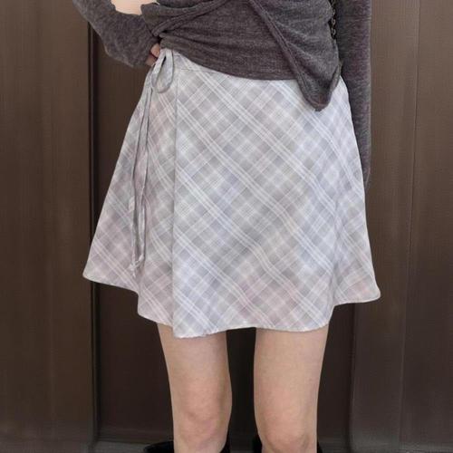 [미라클세븐]여성용 캐주얼 체크 플레어 미니 스커트 스트랩 디자인
