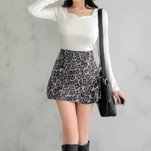 [옷자락]여성 키치 무드 호피 패턴 플레어 미니 스커트
