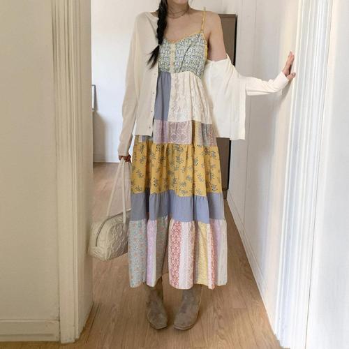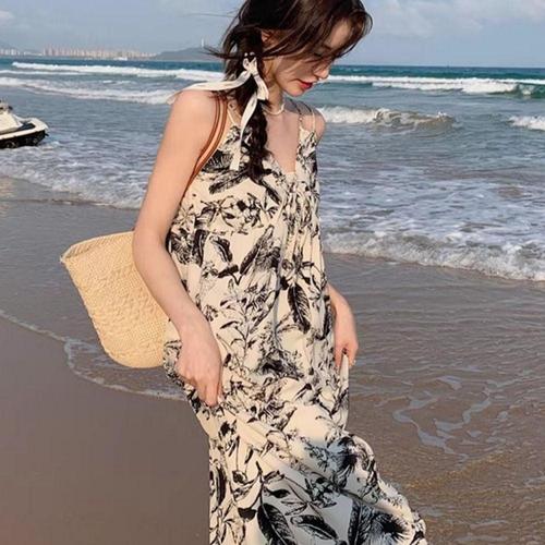 플로럴패턴 데일리원피스 끈나시원피스 롱 트로피컬 체형커버 바캉스룩 꾸안꾸