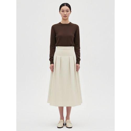 [샵앤]여성 뒷밴딩 핀턱 플리츠 플레어 데일리 롱스커트 NTT-WSK-20807-아이보리