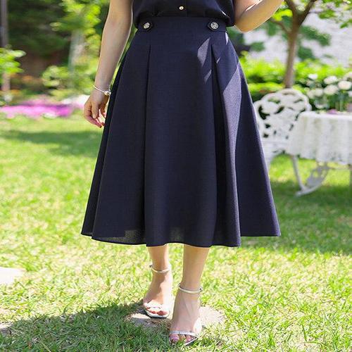 [스타일온미][루이스엔젤] 블레스 사이드 비조 실버 버튼 맞주름 핀턱 플리츠 A라인 롱 스커트