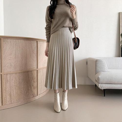 로빈 니트 스커트 플리츠 밴딩 롱스커트