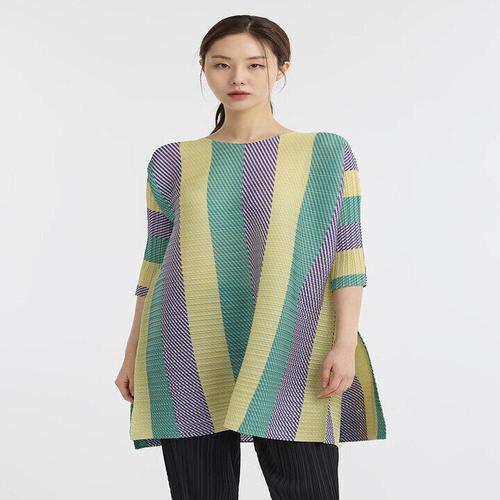 [플리츠미](대구신세계)컬러 스트라이프 루즈핏 티블라우스_PPTSM024004