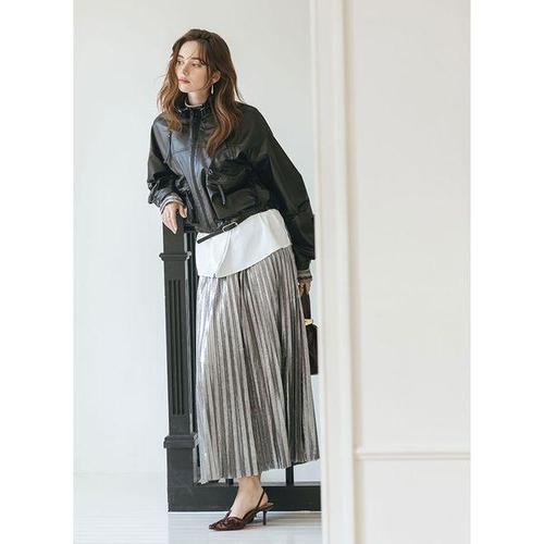 [막스까르띠지오]모던 메탈릭 플리츠 롱 스커트