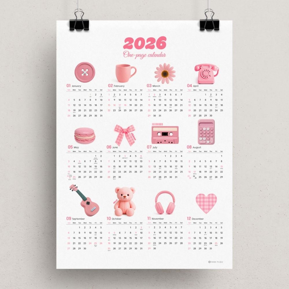 2026년 미니 낱장 캘린더 직장인 학생 26년도 내년 1년치 붙이는 달력