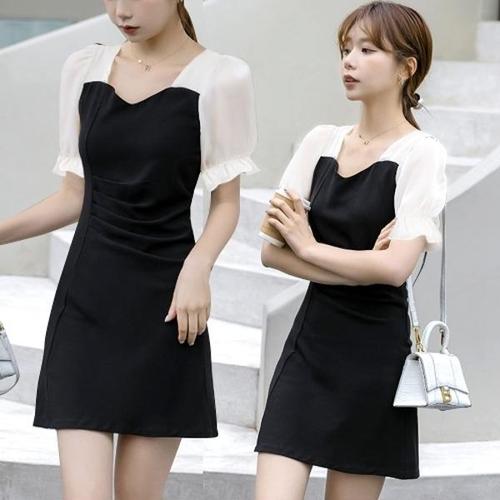 [기타브랜드]미니 원피스 반팔 여름 데일리 하객룩 슬림 프릴 정장 피로연 드레스