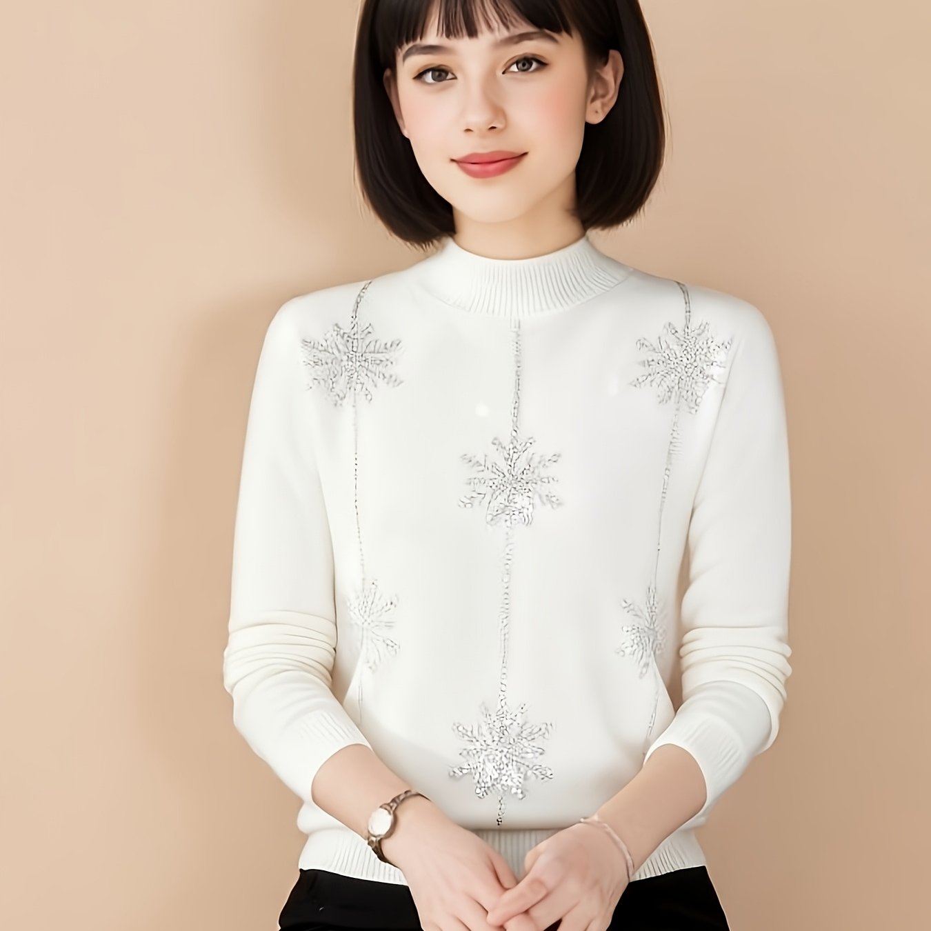 TEMU 1 여성용 가을 패션 하이넥 스웨터, 새로운 눈꽃 라인스톤 풀오버 루즈 베이스 레이어, 봄/가을/겨울 시즌용 부드럽고 피부 친화적인 따뜻한 긴팔 아우터웨어
