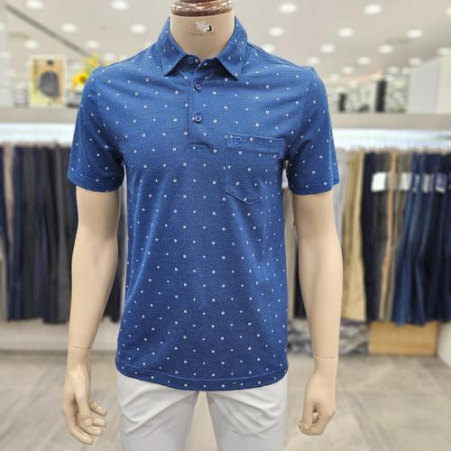 [피에르가르뎅](모다인천점)네이비 올오버 프린트 반팔 카라 티셔츠/PQTS2404_IC