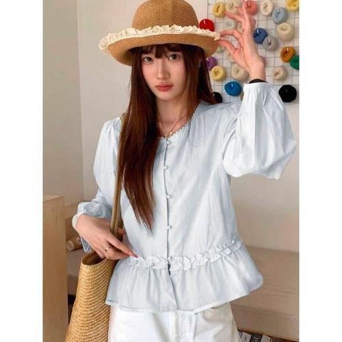 [하젤]피오라 프릴 레이스 면블라우스_S4623