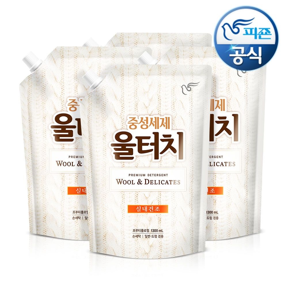 피죤 울터치 울세제 울샴푸 중성세제 고급의류 전용 1.3L 4개