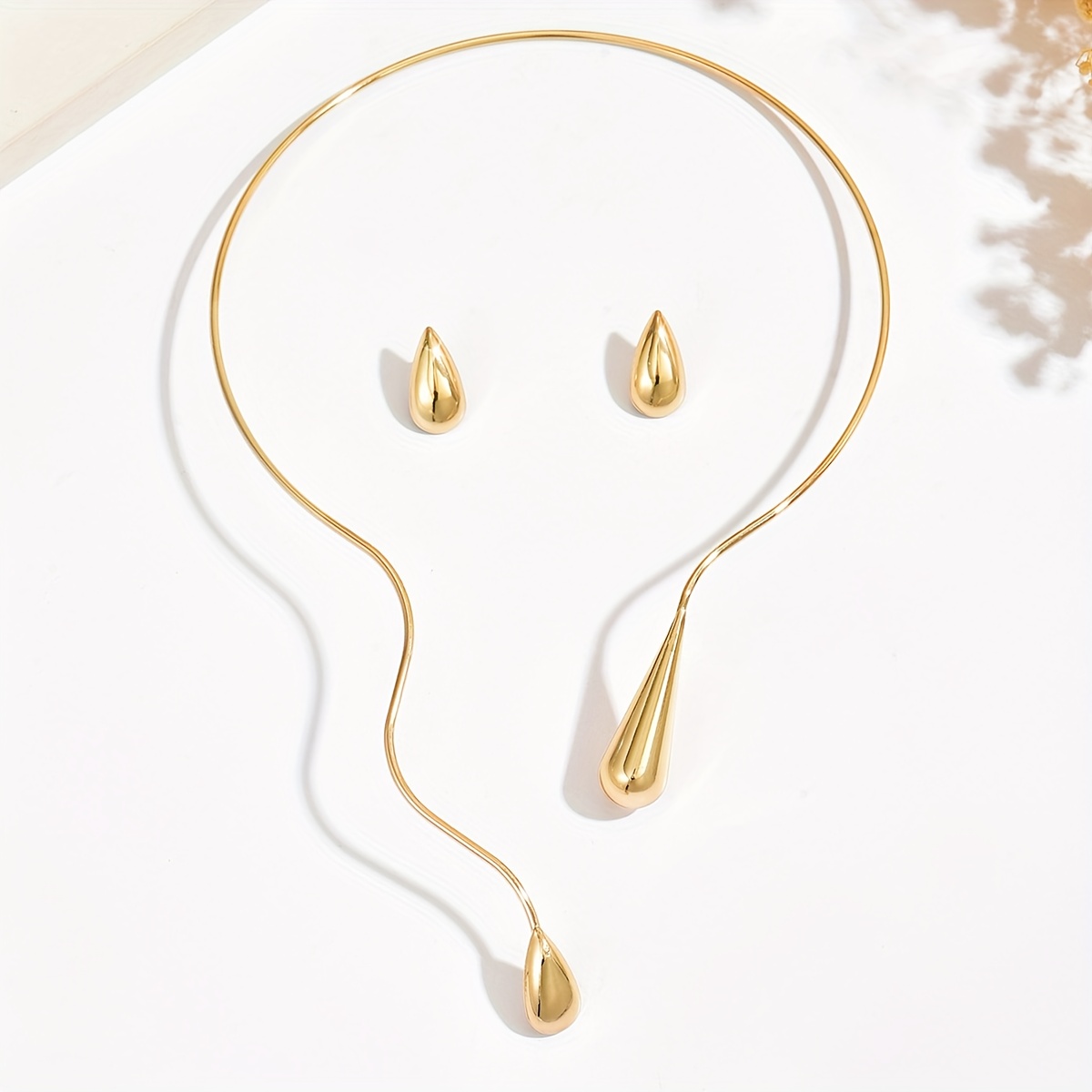 TEMU 스타일 메탈 눈물방울 뱀 목걸이 & 귀걸이 2개 세트 | 빈티지 심플 INS 스타일, 우아하고 상냥함, , 휴가, 발렌타인데이, 어버이날, 축제 행사에 이상적, 엄마, 연인, 친구를 위한 완벽한 선물