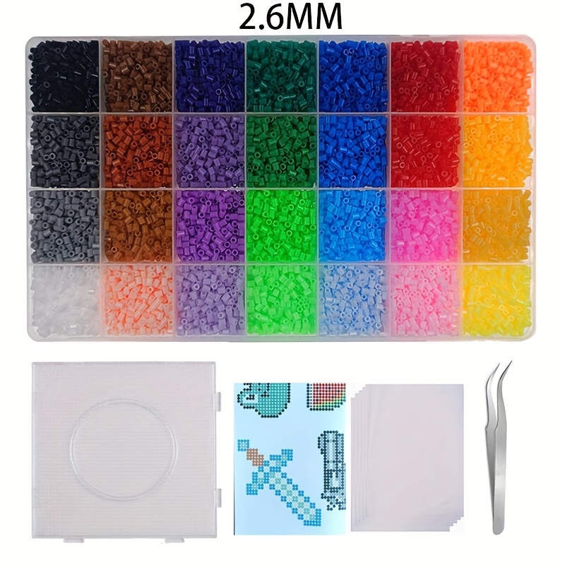 TEMU LXSWY 퓨즈 비즈 크래프트 키트 – 2.6mm/5mm 다색 플라스틱 비즈 28색, 4개의 페그보드와 크래프팅 족집게가 포함된 DIY 픽셀 아트 및 3D 퍼즐 만들기 세트, 창의적인 선물 및 장식용