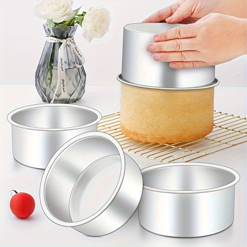 TEMU 3개 세트 4인치 라운드 케이크 몰드, 고정 베이스 알루미늄 합금 레이어 케이크 틀, 생일 결혼식 크리스마스 축제용 미니 케이크 베이킹 세트, 건강하고 튼튼함, 식기세척기 사용 가능