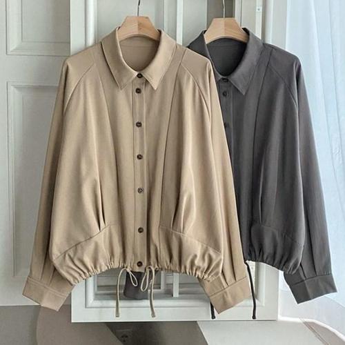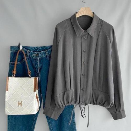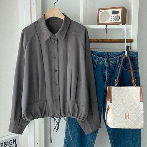 [신상오픈런]여성 톤다운컬러 절개라인 핀턱 스트링 루즈핏 셔츠