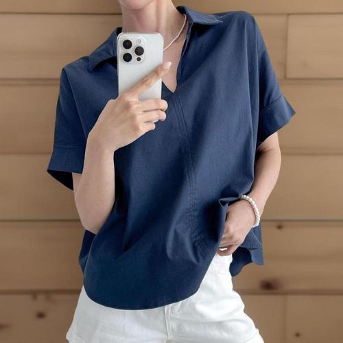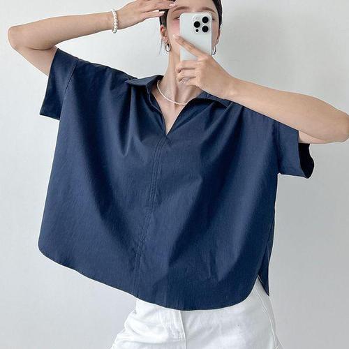 Latium HC06 국내생산 스판 얇고 가벼운 루즈핏 핀턱 남방형 반팔 셔츠블라우스 T2531bl01B