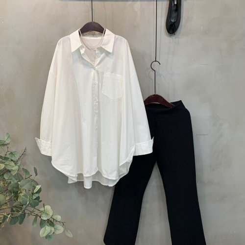 씨샵인더룸 / 구치 핀턱 라운드 밑단 오버핏 긴팔 롱 셔츠 4color C