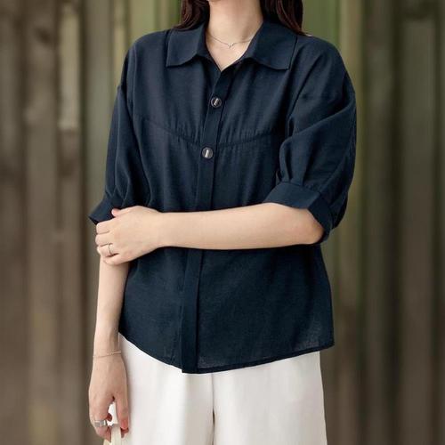 [신상오픈런]여성 레이온 루즈핏 핀턱 7부 무지컬러 블라우스