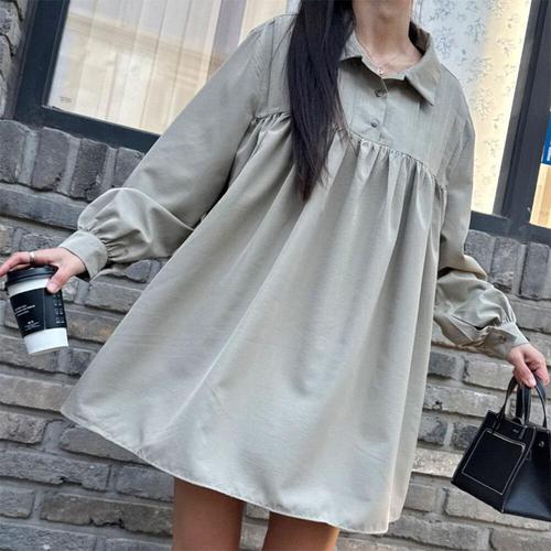 [옷자락]여성 데일리 핀턱 버튼 카라 셔링 미니 원피스
