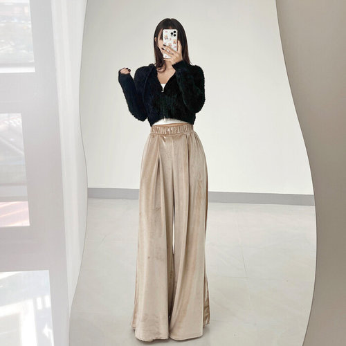 글램핏 / 벨벳 벨로아 밴딩 핀턱 스판 와이드 롱 트레이닝 팬츠 3컬러
