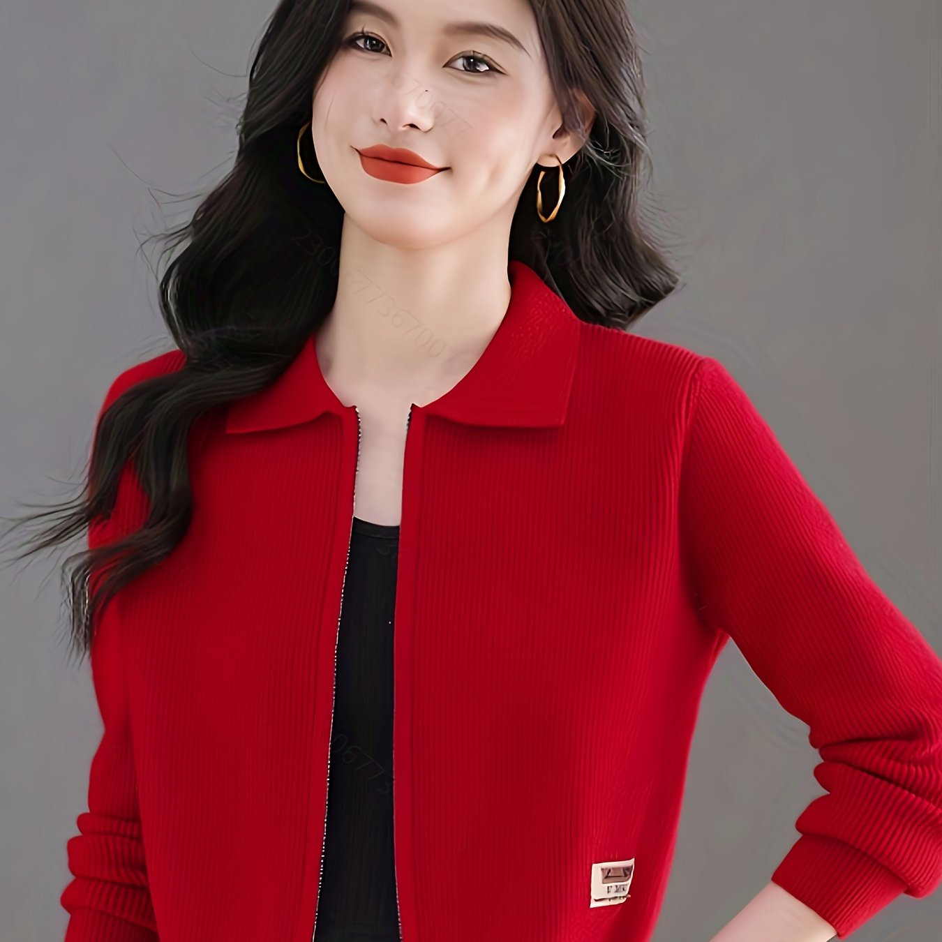 TEMU 세련된 칼라와 지퍼가 있는 새로운 가을/겨울 여성용 숏 카디건