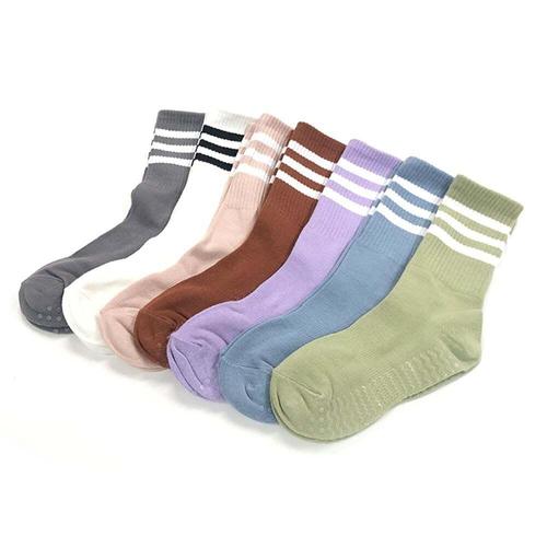 유럽 사이즈 36-43, 1 쌍 니트 자수 요가 피트니스 필라테스 스포츠 실리콘 미끄럼 방지 바닥 여성용 중간 양말
