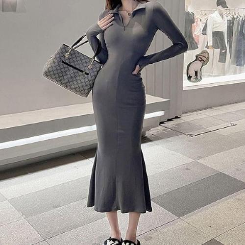 마켓에이 여성용 딥 슬림 롱 니트 원피스 M263-0014