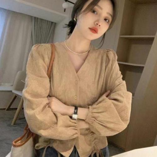 [에이치플러스몰]여성 셔링 스트랩 데일리 블라우스 슬림핏 셔츠 2컬러