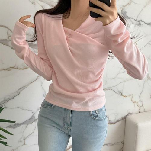 [미라클세븐]여성 핑크 여리핏 드레이프 슬림 사이드 티셔츠