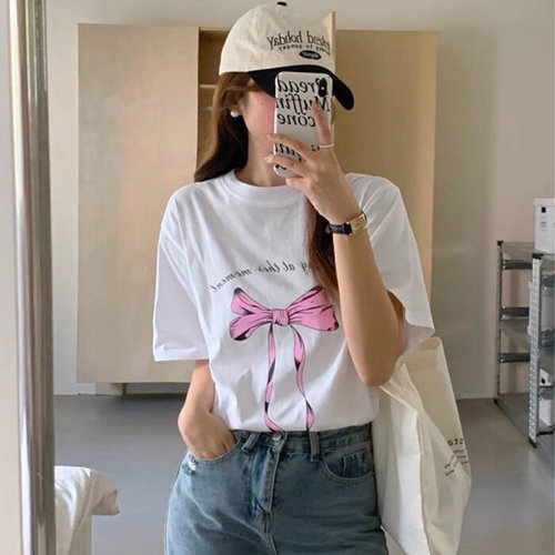플로렌 / 로지 핑크 리본 반팔 티셔츠 BA40649